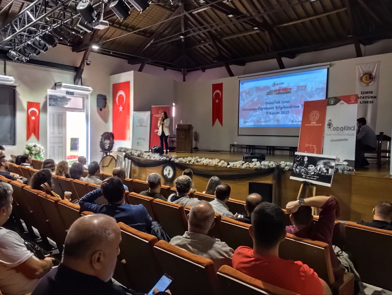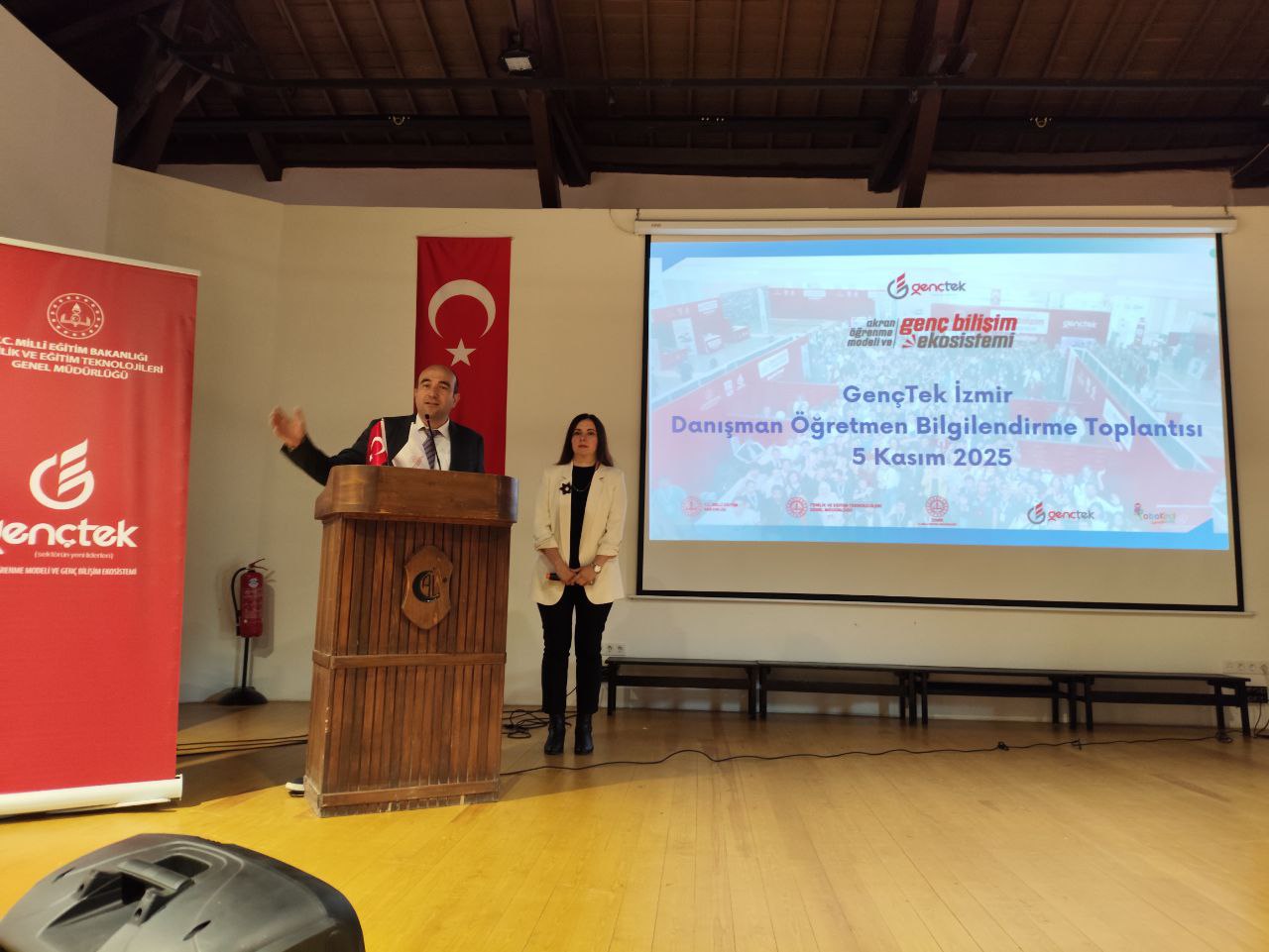 GençTek Akran Öğrenme Modeli ve Genç Bilişim Ekosistemi İl Programları, İzmir’den başlatıldı. Program kapsamında GençTek İzmir Koordinatörlüğü tarafından danışman öğretmenlere yönelik düzenlenen bilgilendirme toplantısı İzmir Atatürk Lisesi ev sahipliğinde 5 Kasım 2025 tarihinde gerçekleştirildi.