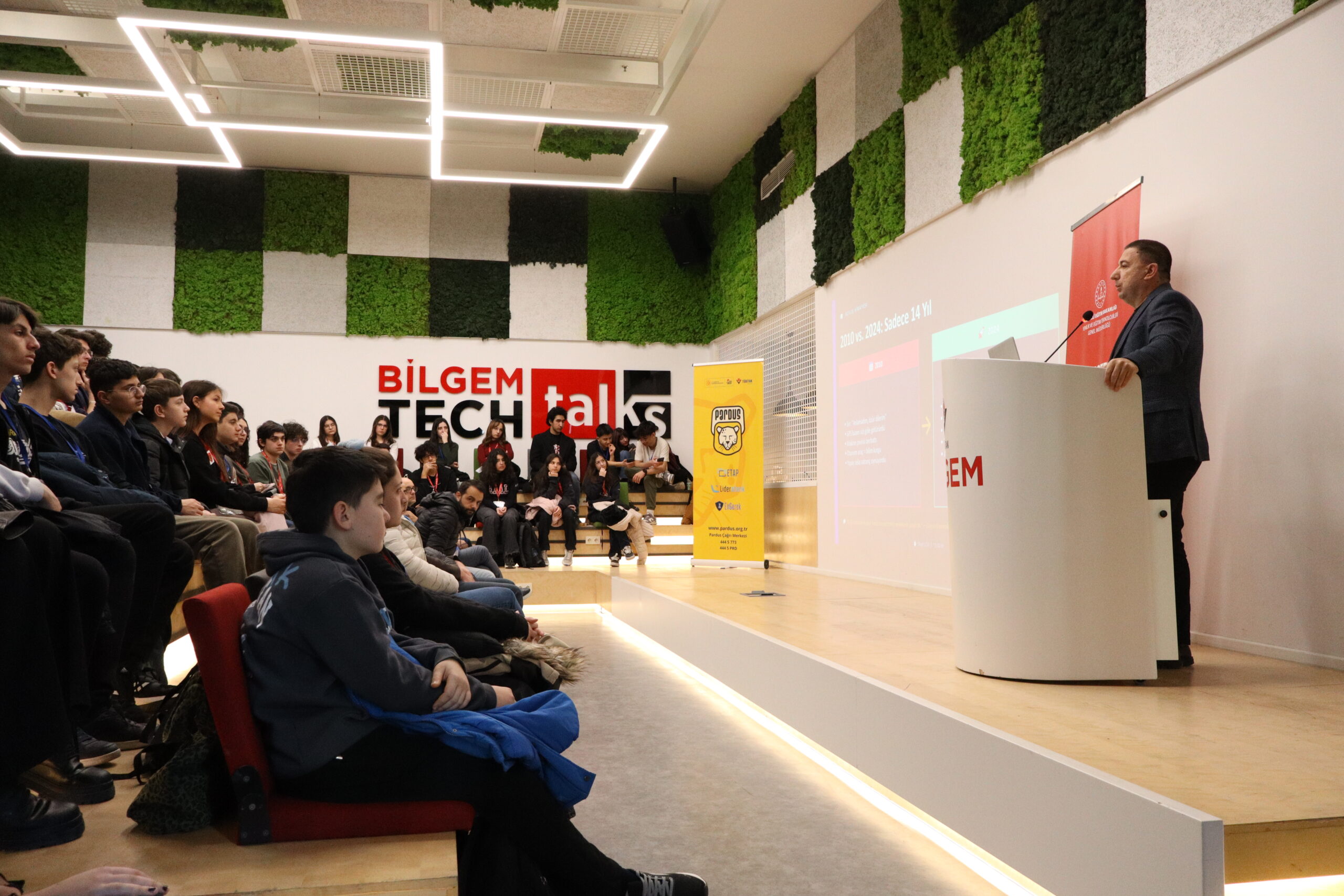 Açık kaynak, Pardus ve özgür yazılım temasıyla gerçekleştirilen programda, Genç Bilişim Ekosistemi öğrencileri ile TÜBİTAK uzmanları bir araya geldi. Programda İnsan Kaynakları Uzmanı Gizem Üçüncü gençlerimiz için TÜBİTAK BİLGEM kariyer olanaklarını ve Genç Bilişim Ekosistemine yönelik fırsatları katılımcılarımızla paylaşırken, Yazılım Geliştirme Mühendisi Ömer Çanga tarafından “Yapay Zekâ Çağında Meslek Seçimi”, Ürünleştirme ve Ürün Yönetimi Bölüm Sorumlusu Dr. Betül Kuruoğlu tarafından “Fikir, Proje, Ürün Dijital Dünyanın Yolculuğu” sunumları yapıldı.